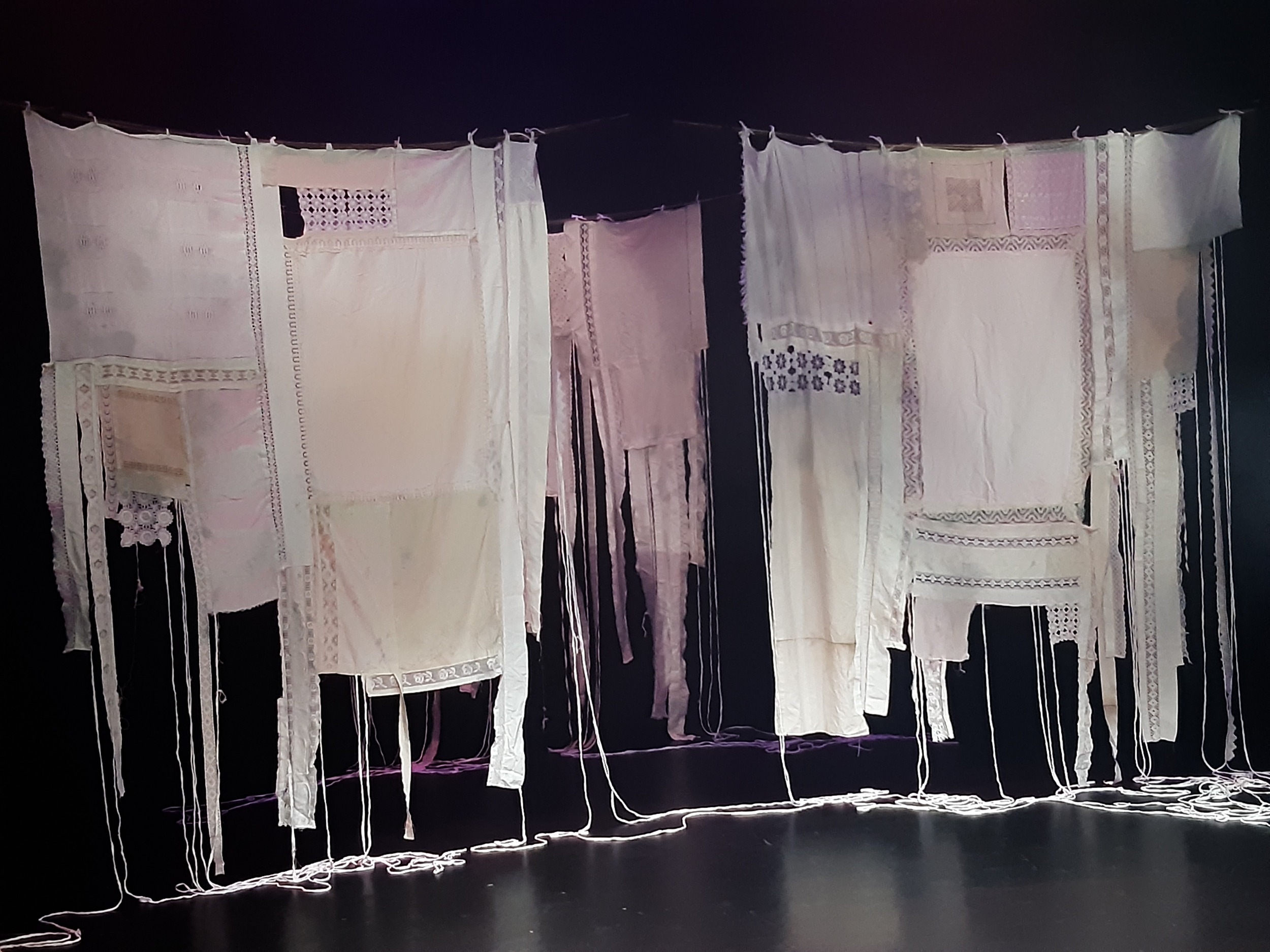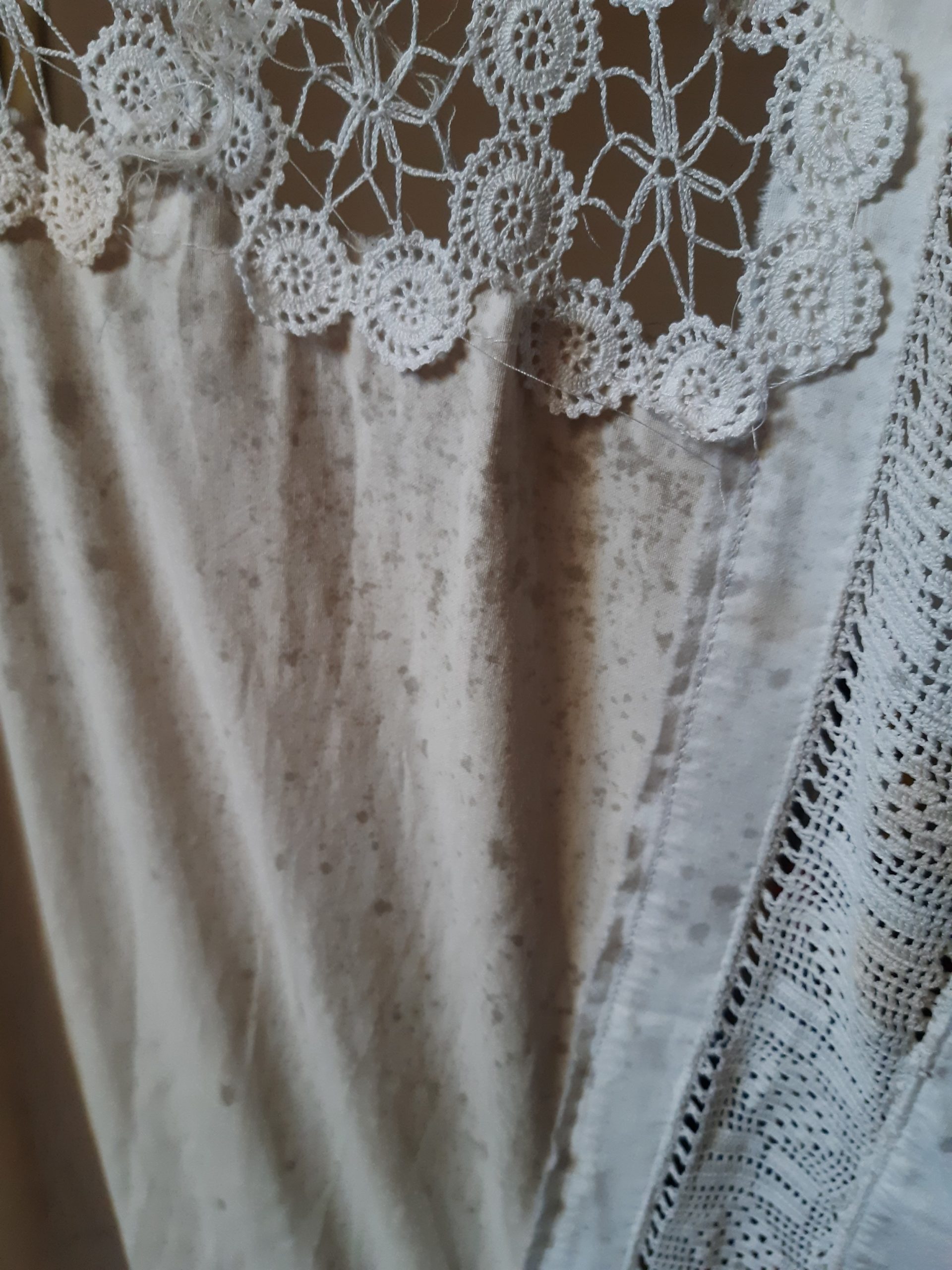 The set was made of strips of worn out hand embroidered linen sheets and cut-off lace from old pillowcases.